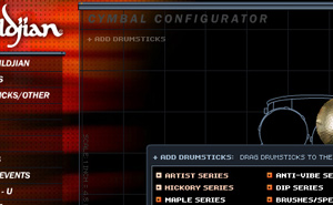 As a web developer/designer for ad2 Interactive Solutions I used Flash(ActionScript 2.0), VBScript, SQL Server 2005(Stored Procedures, Functions, and Views), Photoshop, HTML/CSS/JavaScript, XML and SOAP to update and add functionality to the Zildjian cymbal site on both the front and back-end, as well as the CMS. Most notably, I updated the zildjian 'cymbal configurator' to include a dragNdrop popup menu populated with images and details about zildjian drumsticks from the database, via a php-created XML file, to add drumsticks to their cymbal configurations. I designed the interface for this dragNdrop menu in Adobe Photoshop.